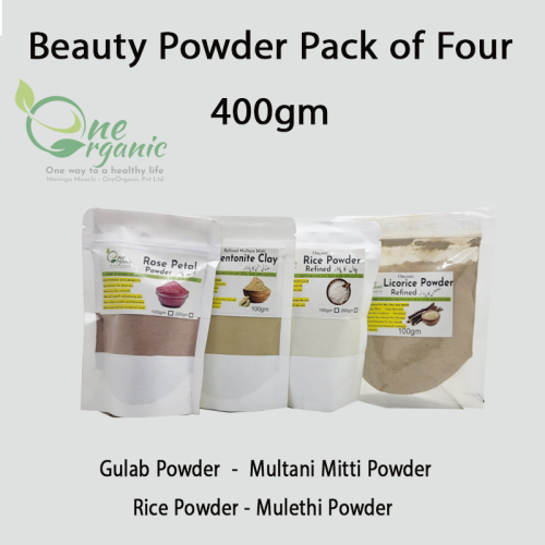 Pack of 4 Four Beauty Powder – Rose Powder , Multani Mitti Bentonite Powder , Rice Powder , Mulethi Licorice Powder – 100gm Each – For Healthy Skin , Lips , Mask